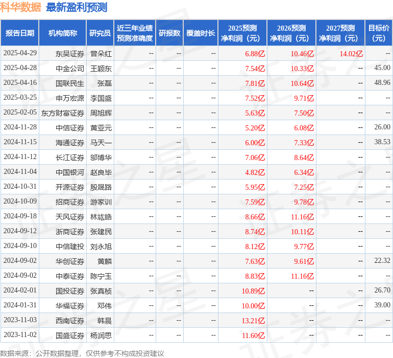 最新盈利预测明细如下: