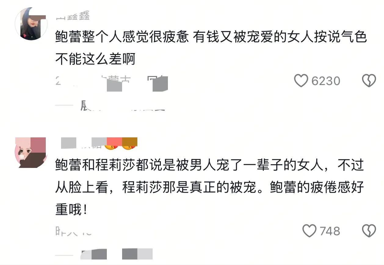 有网友说:鲍蕾不像有钱又被宠爱的女人,整个人很是疲惫不堪,被宠的或许是陆毅。